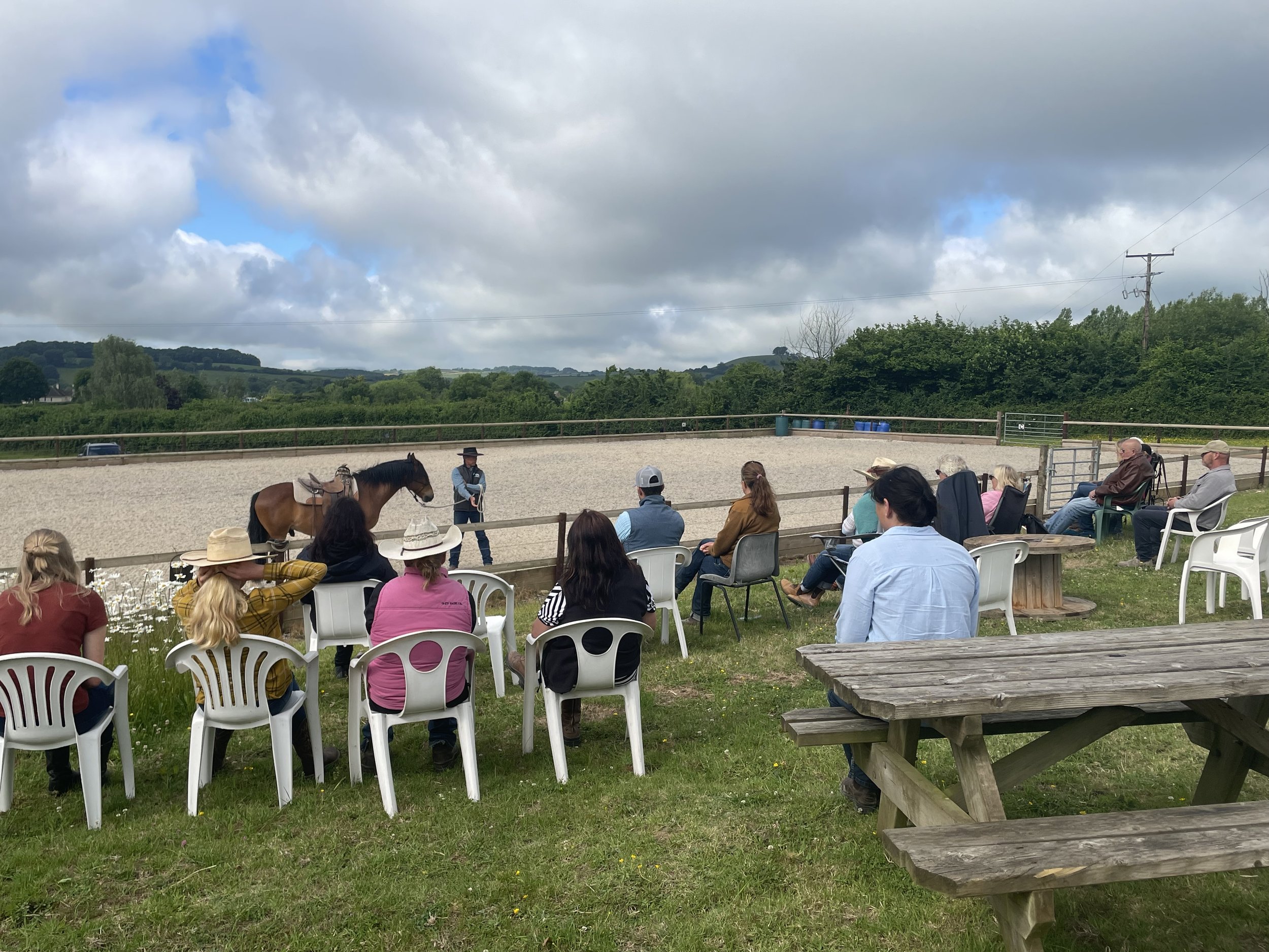 Sit back and relax around the arena with a glass or two, with the beautiful Dorset hills in the background and be entertained by Bob and his horses for an hour.